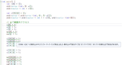 目次 配列外アクセスをしたときの比較表 Visual Studio 2022で範囲外アクセスを気づきやすくする方法5つ エラー一覧を「ビルド+Intellisense」にする sanitizerを積極的に使う 生配列よりstd::arrayがよい Release版でSTLの範囲チェックしたいときは、 _CO…